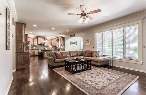 Located in Overland Park, our luxury place is within walking distance to Deanna Rose Farmstead and a giant soccer field, making it suitable for guests of all ages. We are also just 30 minutes away from popular Kansas City attractions such as the Plaza, the Kansas City Zoo, the Sprint Center, Union Station, and various history and art museums/galleries. For your peace of mind, we have Ring monitoring enabled outside of the home and in the garage. And to make your stay even more convenient, the entire house is Alexa enabled.