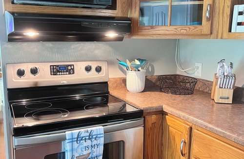 House has everything you will need from pots and pans, baking dishes, crock pot, drip coffee maker, Tupperware, cups, bowls, silverware, plates, children plates, bowls, silverware and cups and many other amenities. We stay at our lake house often so it has everything you should need to enjoy a great time on a lake.