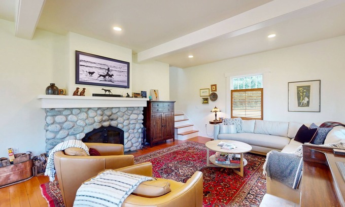 This farmhouse offers a plethora of amenities including a wood-burning fireplace, washer/dryer, internet, firepit, gas grill, and more to ensure a comfortable stay. Whether you're relaxing on the deck, exploring the nearby nature reserves, or enjoying the vintage charm of the farmhouse, this Vashon retreat is the ideal getaway for families or groups of friends. Book your stay now and experience the best of modern comfort and natural beauty in this historic setting.