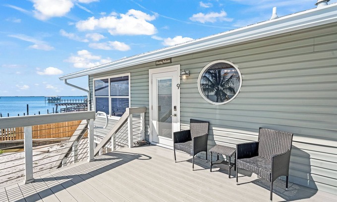 Villa 9, Chasing Pelicans, is a charming king suite set above the river with sweeping water views and a coastal-inspired design. Inside, the villa features a plush king bed, a fully equipped kitchen with modern appliances, and a cozy living area ideal for unwinding after a day in the sun. Step outside to your private balcony, where you can enjoy riverside dining, relax on the sun deck, or watch pelicans glide across the water at sunset. With a private dock and thoughtful touches throughout, this villa is a peaceful retreat just moments from Cocoa Beach adventures. 🌴☀️
