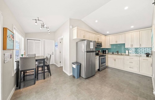 Villa 10, Under the Umbrellas, is a bright and cheerful upstairs suite with playful pops of blue, orange, and yellow throughout. Wake up to riverfront views from your private balcony, ideal for morning coffee or sunset cocktails. Inside, you'll find a spacious king bedroom, a cozy living area with a smart TV, and a fully equipped kitchen with brand-new appliances. With the Banana River at your doorstep and the ocean just across the street, this villa blends riverside tranquility with beachside adventure. 🌊🌴