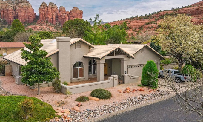 Surrender to Sedona’s magic at this cozy 2-bedroom, 1-bathroom vacation rental home with epic red rock views. Enjoy coffee on the private patio each morning and stargaze from the hot tub at night. Multiple outdoor seating areas offer 360-degree mountain views. After hiking, shopping, or exploring, return to this peaceful escape — just a short walk from trails, dining, and shopping!