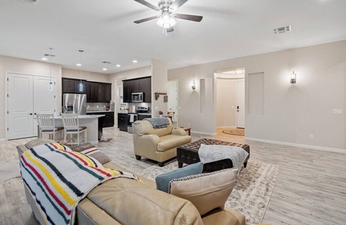 This brand new 4 bedrooms, 2 bathrooms vacation rental is perfect for your next stay. Dog and horse friendly. This home is located on 1 acre and the back is fenced in non-climb horse fence and 4 horse pens! Located just off of Highway 60, it is a short drive to either Surprise or Wickenburg. There are multiple arenas and golf courses nearby. No more than 4 horses allowed. All manure must be removed from the property prior to check out.