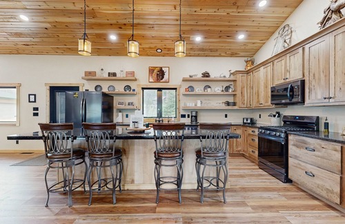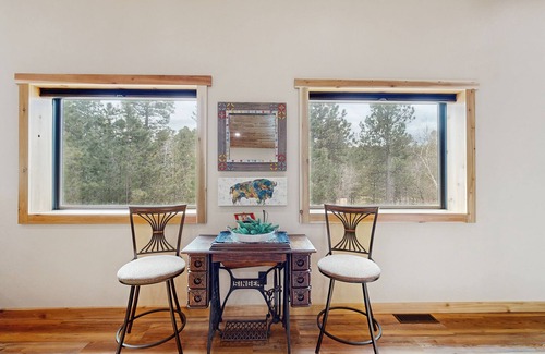 Stunning & spacious house w/private hot tub, secluded, W/D is located in Deadwood. Stunning & spacious house w/private hot tub, secluded, W/D provides accommodation, featuring Parking, Security/Safety, Bedding/Linens, among other amenities. This House features Parking, Security/Safety, Bedding/Linens, to make your stay a comfortable one.