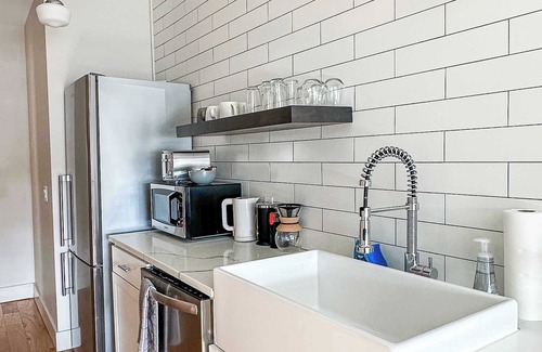 Guest favorite! Spotless and perfectly located 2-bedroom apartment. This deluxe experience offers every convenience - a new premium mattress, 50" flat screen TV, fully equipped kitchen with high-end appliances, sleek furnishings, and secure entry.
