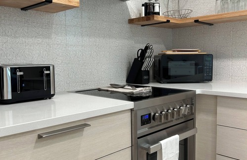 Relax and unwind in this calm, stylish, beautifully furnished studio apartment. The full kitchen is fully equipped with anything you may need and extra electrical appliances available in the shared laundry room. The private bathroom features a beautiful rain shower. Relax in the cosy living area with feature fireplace. There is even a workspace available for those who need.