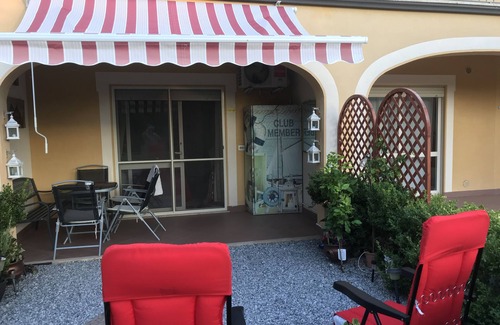 From the apartment, a ten minute walk through an enchanting forest of pine and eucalyptus, brings you to a large sandy beach where free sun loungers are provided for your use. If you prefer to stay at the resort, there are great on-site facilities which include 2 magnificent outdoor pools (with lifeguards), 2 tennis courts, a football field, a restaurant that serves excellent food (open only during the peak season), children's playground with swings and slide, volley ball on the beach and free use of sun-loungers and umbrella on the private beach a short walk from the apartment. There is also a lifeguard on the beach.