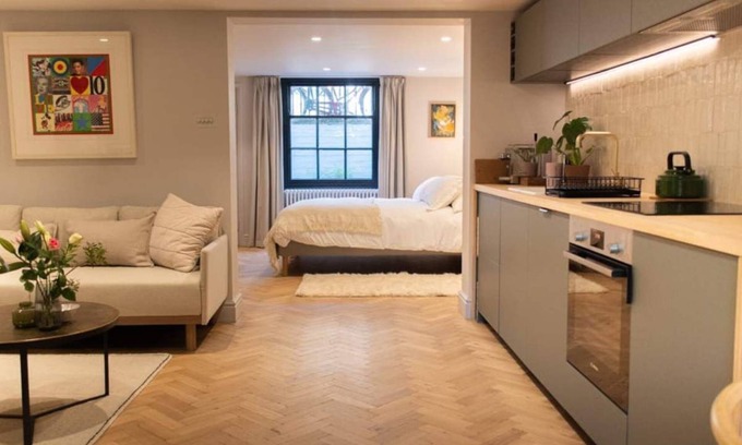 Welcome to our beautiful newly renovated 1-bed apartment, situated on the lower ground floor of a main house (basement), designed with a modern Scandinavian touch. Every detail has been thoughtfully curated to create a warm and inviting atmosphere. Please bear in mind entrance to the apartment is via some steps & no parking available.