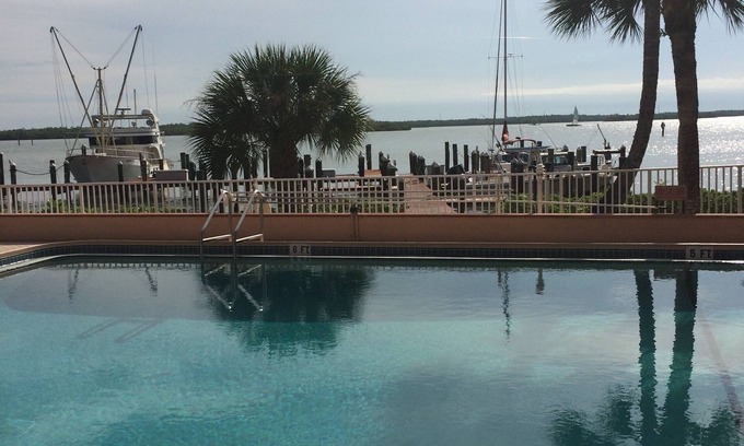 Beautiful Waterfront Condo on the Marco River. 1King bed, 1 full bath. Spacious living area, two flat screen TV's, full Kitchen, east facing Lanai.
