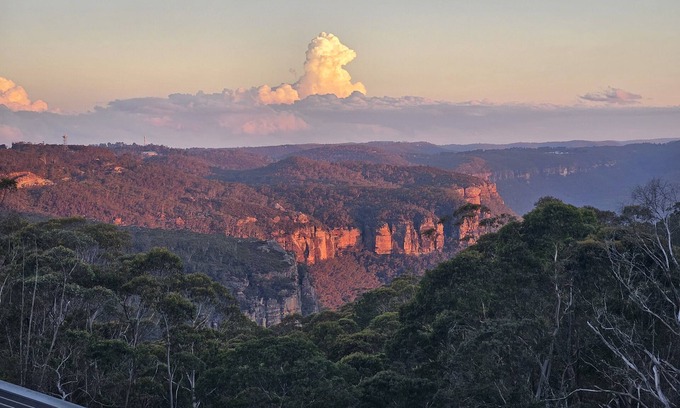 BELLEVUE is a quiet, private six bedroom residence that easily accommodates 12 people. It is at literally the highest point of the Blue Mountains - 1,110M above sea level. BELLEVUE is so named for its "beautiful view'" - in the top ten of Blue Mountains private properties. The views from the loungeroom span to Kanangra Walls over 100kms away. Closer are the stunning cliff escarpment views.