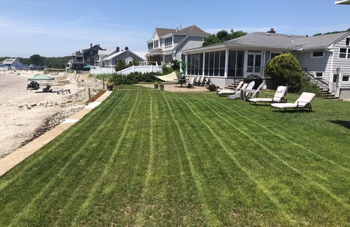 Stunning Views from this Beachfront house in Manchester-by-the-Sea, located directly on Magnolia Beach. Sand and Surf right outside your door! 4/5 Bedroom Beach House with Finished Walkout Basement with Bunk beds as well. Waterfront Screened Porch, Patio, Lawn. Updated Kitchen. Laundry. Small office overlooking Ocean with twin bed. Pier and Magnolia Center only short walk away (about 1/8 mile) with Restaurants, Shopping, convenience store. Get your toes in the sand and let your worries melt away with every wave that rolls in!