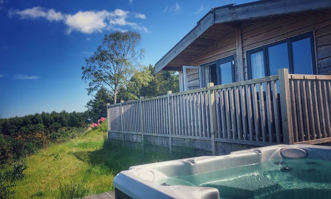 Stunning views from exclusive hot tub, idyllic, stylish and private | Cabin in Forres