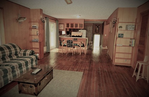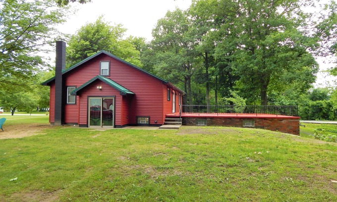 Welcome to The Lodge at the Lake LLC, just moments from the shore of Lake Erie. The Lodge is comfortably furnished with 2 bedrooms, 2 baths (one with a Jacuzzi tub), a 900 sq ft patio, and an attached garage. There is ample parking for your boats, trailers, and RVs. We are nestled on about 50 private wooded acres with amenities for hunting. While staying here you and your guests will enjoy 2 tvs (1000+ channels), a pool table, wood burning fireplace and a well-equipped home-style kitchen where todays catch can become a delicious feast! Whether you are looking for a beautiful place to stay during your next fishing / hunting trip or just a relaxing time away from the hustle and bustle of life you can enjoy nature in its glory here at The Lodge! Call or message today for more information or to plan your next get away! We now have a 9-hole disc golf course! Not fancy—just rustic, cozy, and built for outdoorsmen.