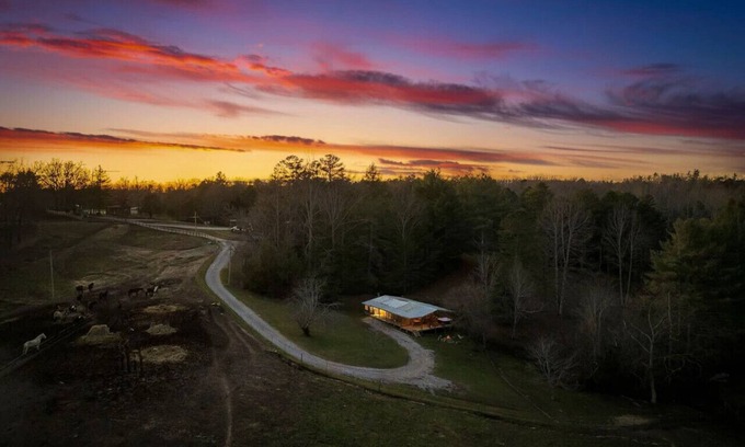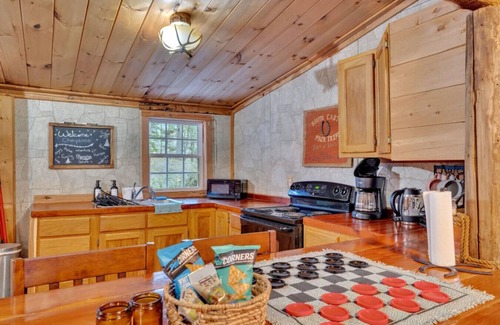 Rustic cabin getaway, perfect for families. Unwind in the tranquility of horse pasture views, soak in the hot tub under the stars, roast marshmallows by the fire pit, and listen to the soothing creek. Ideal for families with kids ages 4 and up, seeking a nature retreat.