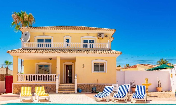 Stunning Villa Rosa Quesada Centre private pool is located in Rojales. Stunning Villa Rosa Quesada Centre private pool provides accommodation, featuring Pool, TV, Security/Safety, among other amenities. This Villa features Pool, TV, Security/Safety, to make your stay a comfortable one.