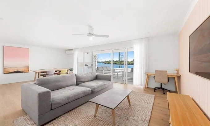 Welcome to our breathtaking 3-BR riverfront Airbnb! Enjoy the Maroochy River view from your own private balcony. Spacious and elegant interiors, modern furniture, and a commercial-grade kitchen await. Relax in comfy bedrooms, work in the dedicated space, and revel in ample storage. Stay cool with A/C, stay connected with Wi-Fi, and enjoy the convenience of a fully equipped laundry. Free street parking available.