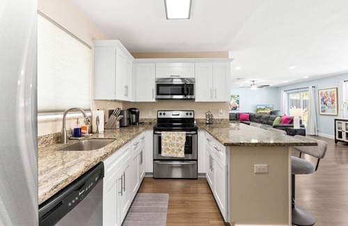 Make the most of your South Florida getaway at this charming and fully furnished 3-bedroom, 2-bath waterfront home perfect for families or groups of friends. This inviting retreat offers a peaceful escape just 1 mile from the beach, combining comfort, convenience, and outdoor luxury.