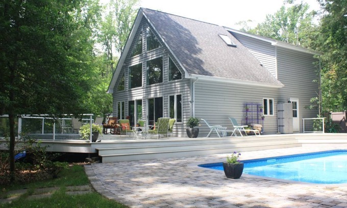 Our family spent an absolutely fantastic week at Choptank River House in late July/early August. We were looking to get away from the heat and crowds of NYC in summer with our 14-month-old and 2 dogs, and the River House could not have been more perfect. The house itself is stunning -- beautifully appointed, filled with natural light and very-well maintained, and we arrived close to midnight to find that the fridge had been stocked with an awesome array of local produce. The house is removed enough to feel like a hideaway but also just a short drive from town, and we were able to make fun day trips to nearby Saint Michael's and the Dogfish Head brewery in Delaware, although with the fantastic views of the river, our own large swimming pool and outdoor hot tub, we sometimes found it hard to motivate ourselves to leave the property.