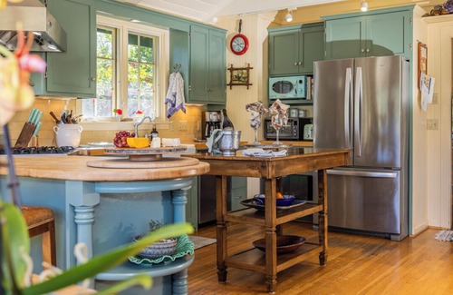 Every detail at this estate has been thoughtfully curated for both comfort and elegance. Enjoy a fully stocked country kitchen, lush ornamental gardens, and a 55-foot heated pool that beckons relaxation. The park-like setting features ample social spaces with shady pergolas perfect for guest mingling, as well as outdoor activities including basketball, volleyball, and croquet. You can also explore the organic vineyard producing award-winning wines, where guests are welcome to sample and purchase at discounted rates. In the evenings, gather around the two charcoal BBQs or propane grill while toasting with locally produced wines amidst magnificent sunsets over the mountains, all set against the peaceful vibe of the estate.