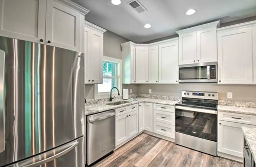 Fully equipped w/stainless steel appliances, drip coffee maker, dishware & flatware, Ninja blender, cooking basics, Crock-Pot, ice maker, island w/seating, tupperware, basic spices, cutting boards, platters, etc!