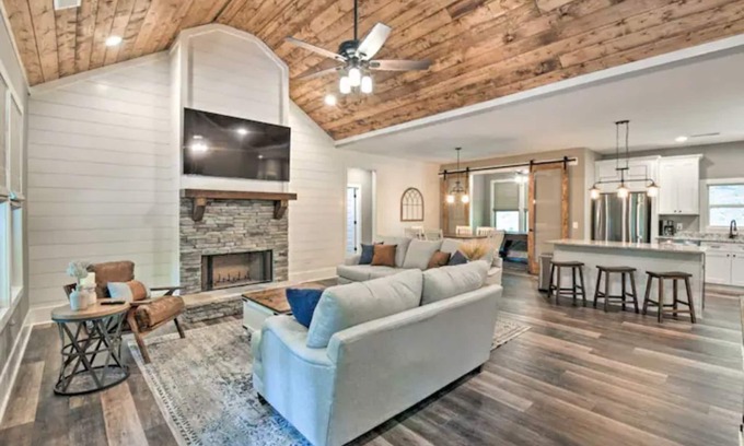 Start your morning with a cup of coffee while enjoying the lush greenery and tranquil scenery from the comfort of the front porch on the Adirondack rockers. Next, spend the afternoon in the great outdoors tubing, fishing, hiking, mountain biking or boating in the nearby lakes. Unwind the day at the shops and restaurants in downtown Ellijay, just 7 miles away or perhaps enjoy a glass of wine and take a winery tour at the numerous vineyards just a few short miles away. As you arrive home, enjoy game night with the rustic air hockey table, wall-mount Connect 4 and board games or cozy up at the outdoor fire pit or build your own fire to enjoy indoors in your wood-burning fireplace. Wood provided seasonally!