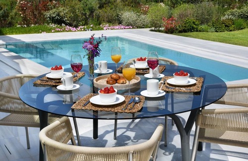 - Beautiful Outdoor Spaces: The villa features a private heated infinity-edge pool with hydromassage, complemented by outdoor lounge areas and dining spaces, creating an inviting ambiance for al fresco celebrations.