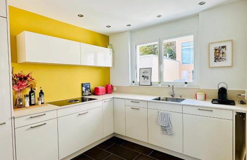Offering a garden, Stylisches Ferienhaus bis 6 Gäste mit einzigartigem Seepanorama offers accommodations in Ermatingen. This property offers access to a balcony, free private parking, and free Wifi. The property features a children's playground and outdoor furniture. Featuring a terrace and lake views, the spacious vacation home includes 3 bedrooms, a living room, flat-screen TV, an equipped kitchen, and 1 bathroom with a walk-in shower and a bath. Towels and bed linen are offered in the vacation home. For added privacy, the accommodation features a private entrance. A mini-market is available at the vacation home. Guests at the vacation home will be able to enjoy activities in and around Ermatingen, like hiking. A water park is available on-site, and both snorkeling and cycling can be enjoyed close to Stylisches Ferienhaus bis 6 Gäste mit einzigartigem Seepanorama. Konstanz Central Station is 5.8 miles from the accommodation, while Monastic Island of Reichenau is 11 miles from the property.