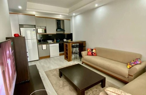 This stylish 1-bedroom apartment is located in a brand-new complex in Avsallar area with a Pool view and just a 10-minute walk to the sand public beach for swimming , Cafe & Restaurants , bazaar market & busy area
