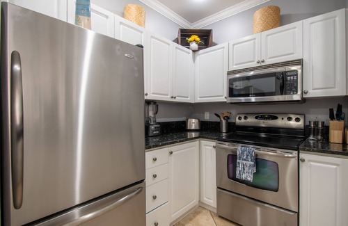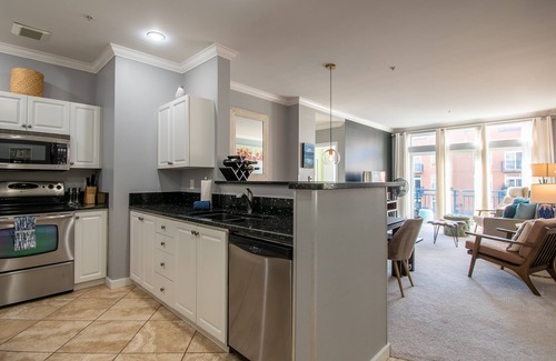 Our home has modern furnishings, a smart television in the living room and both bedrooms. In this space, you will have 1 brand new king sized bed in the master bedroom with a walk-in closet, 1 extremely comfortable queen sized bed in the 2nd bedroom, and a premium sleeper sofa (it is actually comfortable!) in the living room to add an extra sleeping option when needed. The kitchen is fully equipped to please any cook, and there is a washer/dryer in the condo for your convenience. Tall oversized windows throughout the condo provide plenty of natural light and a beautiful garden view- you'll hardly know that you are in the center of the city. Our home also includes wireless internet and a large electric air conditioning unit.