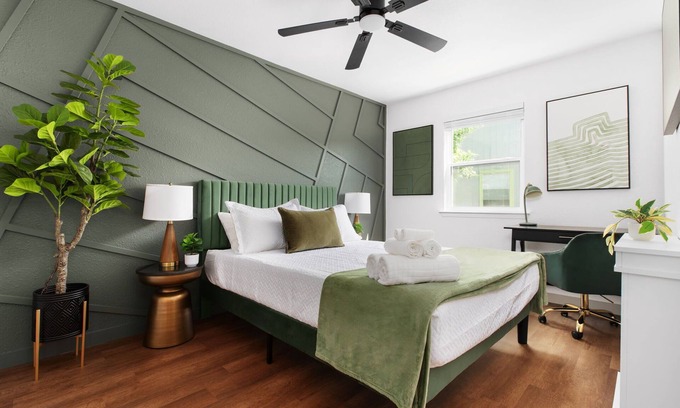 Searching for a comfortable space for your Austin trip? This property features a high-end furnishings, spacious bedrooms with desks, and a lovely outdoor common space with yard games, a fire pit, and a BBQ grill. Once you’re ready to explore, you’re just a short drive from downtown, SoCo, and South Lamar’s bars and restaurants.