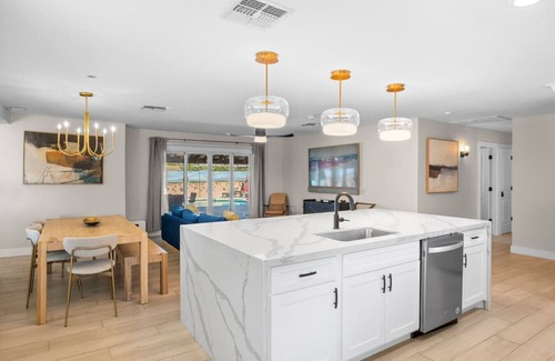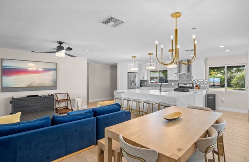 Walk directly into an open living and kitchen area perfect for entertaining! There's direct access into the backyard with pool, hot tub, outdoor seating & dining plus pool games that will keep the entire crew entertained for hours! 4 bedrooms offer ample space & privacy featuring a kids room with bunk & gaming system. The kitchen is fully stocked with all cooking essentials.