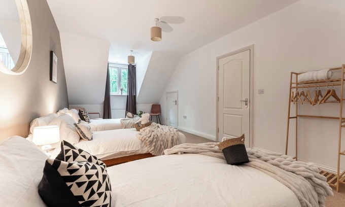 Stylish 6-BR Getaway in Quiet Mildenhall Area! is located in Mildenhall. Stylish 6-BR Getaway in Quiet Mildenhall Area! provides accommodation, featuring Bedding/Linens, Fireplace/Heating, Child Friendly, among other amenities. This House features Bedding/Linens, Fireplace/Heating, Child Friendly, to make your stay a comfortable one.