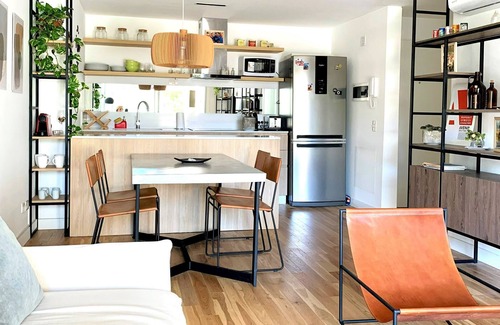Stylish one-bedroom apartment in a premium neighbourhood of Buenos Aires. Modern kitchen integrated into spacious living room, dining room and balcony as well as comfortable bed in room with full blackout curtains. Pool, grill, and riverfront gym on the top floor!