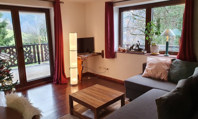Private apartment in a 3-level chalet on the sunny side of the valley, refurbished while retaining its authentic side.