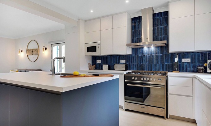 The large kitchen has plenty of space to cook your meals and is fully equipped for your cooking needs. The kitchen has a refrigerator/freezer, dishwasher, five burner gas cooktop with electric oven and a washer/dryer combo. For your enjoyment there is a kettle, toaster, as well as the Kotlie 4 in 1 coffee maker that allows you to enjoy a variety of coffee pods. From Dolce Gusto, Nespresso, ESE pods or fresh coffee. With many local supermarkets, as well as fresh produce and fish markets, this kitchen is perfect for your self catering holidays.