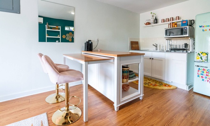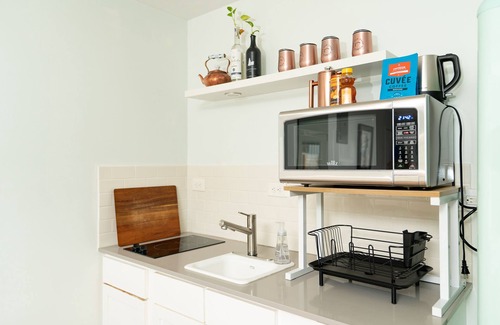 Stylish and cozy tiny home, lovingly designed by a local artist that's near the heart of Iconic South Congress. Relax in your own large, private,and sunny patio with games!