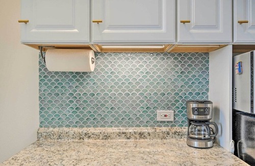 KITCHENETTE: Fridge, microwave, drip coffee maker, teapot, water filter pitcher, dishware & flatware, ice tray, toaster