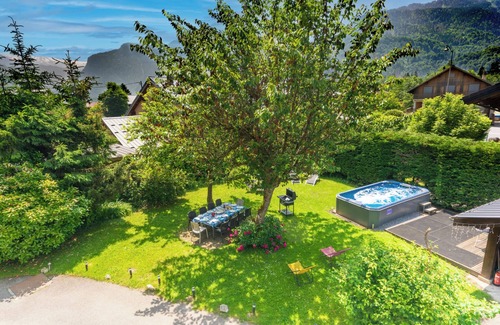 Chalet Moccand offers a flat and sunny garden, with ample parking. In the summer there is plenty of space for outside dining and BBQ's in the shade of the mature apple trees. In the winter plenty of space for kids to play and make snowmen! The chalet benefits from a superb 4.5m/15 foot long swim spa (parental supervision required). Great for swimming or relaxation. One end is a spa / hot tub with seating, jets and bubbles, while the other end has a series of strong jets, which supply an adjustable current for swimming. Hot and steamy in the winter, cool and refreshing in the summer! Heated and available until 9pm everyday of the year.
