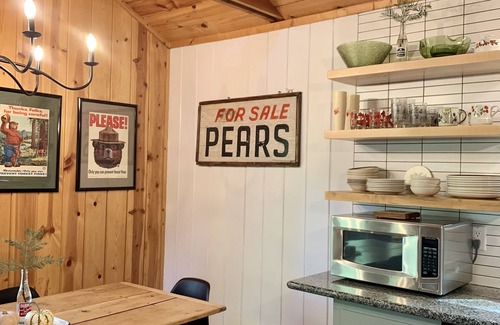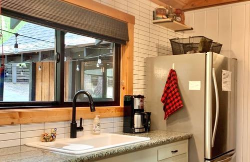 We are interior designers and have made this cabin extremely comfortable and cute! The kitchen has everything you will need to cook with all brand new appliances and small appliances (toaster, popcorn maker, blender, food processor, etc). We supply organic coffee, sugar, oils and vinegars and many condiments. We even have instant oatmeal and hot cocoa in case you weren't able to make it to the store before your travel.