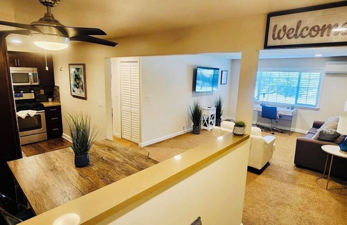 Experience the perfect balance of comfort, convenience, and productivity in our thoughtfully designed 1-bed, 1-bath retreat tailored for traveling professionals. Say goodbye to the hassle of hotel stays and hello to a seamless work-from-home experience in a stylish, fully equipped space. Whether you're a healthcare professional, entrepreneur, or relocating family, this peaceful haven provides everything you need—high-speed WiFi, a cozy king-size bed, a sofa bed for extra guests, and all the comforts of home.