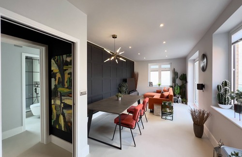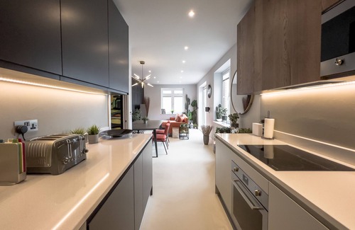 Stylish apartment in Mile End literally less than a minute away from the tube station for easy transport around London. Fully equipped kitchen including a washer dryer and a wine cooler. Sweep open the bi-folds and enjoy a glass of wine on the balcony. The bedrooms don't let the stylish side down, with king size double beds in both. Nor, do the bathrooms — be it the swish ensuite with its impressive shower, or the luxurious bathroom with its exquisite, free-standing bathtub.
