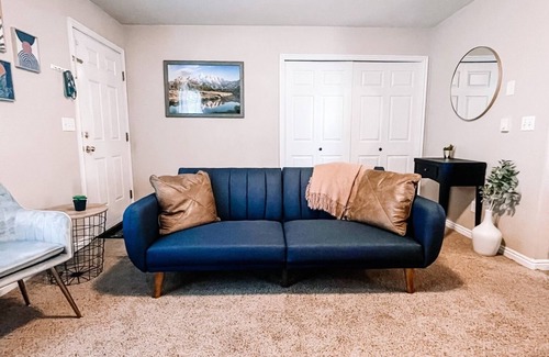 Enjoy the Entire apartment for you! Beautifully decorated, this apartment can sleep up to 6 people with 2 bedrooms each with a queen bed and a futon that converts into a bed in the living room. Located in Rexburg, ID. Near BYU-I, National Parks, and other outdoor attractions. Free Parking available.