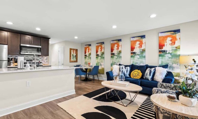 The modern and comfy getaway will leave you in awe. Stylish wooden floors extend throughout the entire apartment. Unit is found on the ground floor so no stairs to climb.