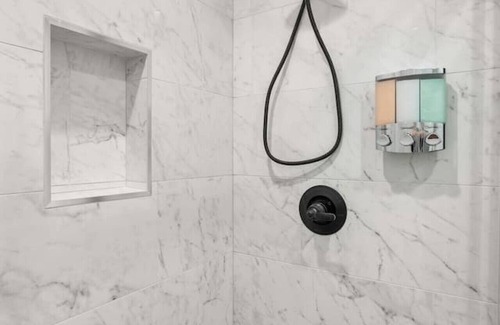 BATHROOMS: Enjoy the COMFORT of our 2 COMMON Bathrooms. The full bathroom features a glass-enclosed SHOWER, hot shower, and complete bath essentials such as bath gel, shampoo, and conditioner. The half bathroom also includes a CHIC Vanity Area for easy prim up, as well as freshly stocked toiletries.