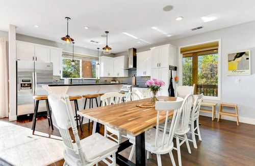 Escape to a world of luxury and relaxation in the heart of the Sierra Foothills near Kirkwood Ski Resort! Our stunning vacation home is the epitome of elegance, modern amenities, and ultimate peace. As you approach, the classic exterior design and spacious deck will take your breath away, inviting you to bask in the fresh mountain air and soak in the breathtaking views of the surrounding hills. But the real showstopper? Outside, a private hot tub awaits, offering the perfect spot to unwind.