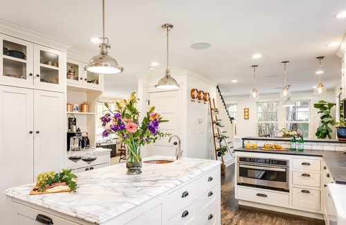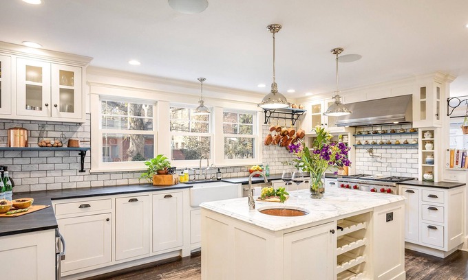 Step inside to a seamless blend of historic elegance and modern comfort. The open living and dining area is ideal for family dining and cozy gatherings. The adjacent gourmet chef’s kitchen boasts premium appliances (Wolf, Sub-Zero, Bosch), luxurious marble and travertine finishes, and a sunny breakfast nook.