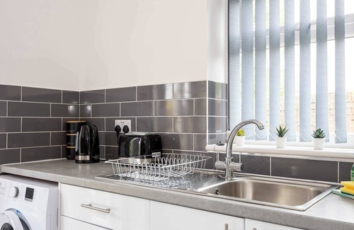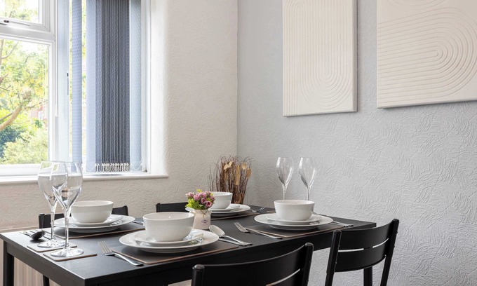 A bright and modern 2-bedroom home for up to 4 guests, complete with a fully equipped kitchen, open-plan living space, large garden, and free parking. Perfect for business trips, family visits, or a city break, with Huyton station and local bus stops close by, and central Liverpool just a short drive away.