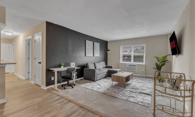 Experience Raleigh's charm in our elegant 2-bedroom, 1-bathroom apartment, ranked among the "Best Places to Live. With 800 sq ft of space, this home features 1 King Bed, 2 Plush Full Beds, and a Convertible Sleeper Couch. Enjoy Lightning Fast Wifi, a Fully Equipped Kitchen, and Luxury Amenities perfect for extended stays. Located minutes from Downtown Raleigh, explore vibrant restaurants, bars, and shops right at your doorstep. Ideal for business or leisure. Book now and start your journey!