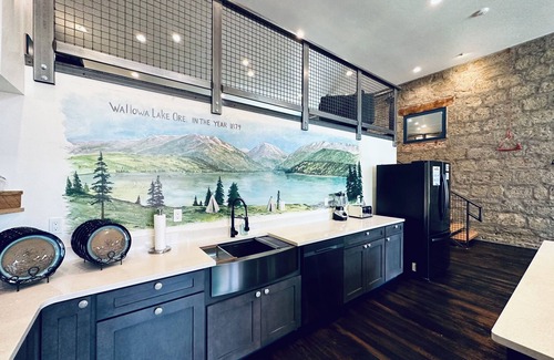 Experience the Matterhorn, a large and stylish condo on Main Street in Enterprise. Perfect for families, it features foosball and a pool table to keep everyone entertained. Thoughtfully designed with cozy details, the unit showcases the beauty of Wallowa Lake 🏞️. Enjoy king-sized beds 🛏️, a well-equipped kitchen 🍳, and a relaxing clawfoot tub 🛁. Easy access to local shops, cafes, and Wallowa Lake.