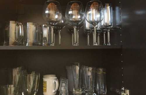Kitchen has all the amenities: Oven, fridge w/ freezer, cutlery, dishes and pans, kettle, nespresso coffee machine.